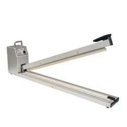 FS Impulse Hand Sealer Series offer a longer sealing length for wider sealing applications. Sealers are gray in color, and are available in 23.6”, 31.5” or 39.4” with a 2.8 mm seal width. The sealers are portable and made of aluminum construction. No warm-up time is needed, and the sealers are very easy to operate. They are also equipped with an electronic timer which controls the sealing time needed for the varying thickness of the different materials. Once the timer is set, it will give a consistently flat seal. It is recommended that the user hold the seal down for a few seconds more after the light goes out to ensure enough time for the seal to cool and set.Manufacturer’s replacement kit includes 2 elements and 1 Teflon cover.